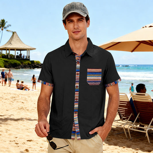 Men's Contrasting-Color Beach Short-Sleeve Casual Shirt